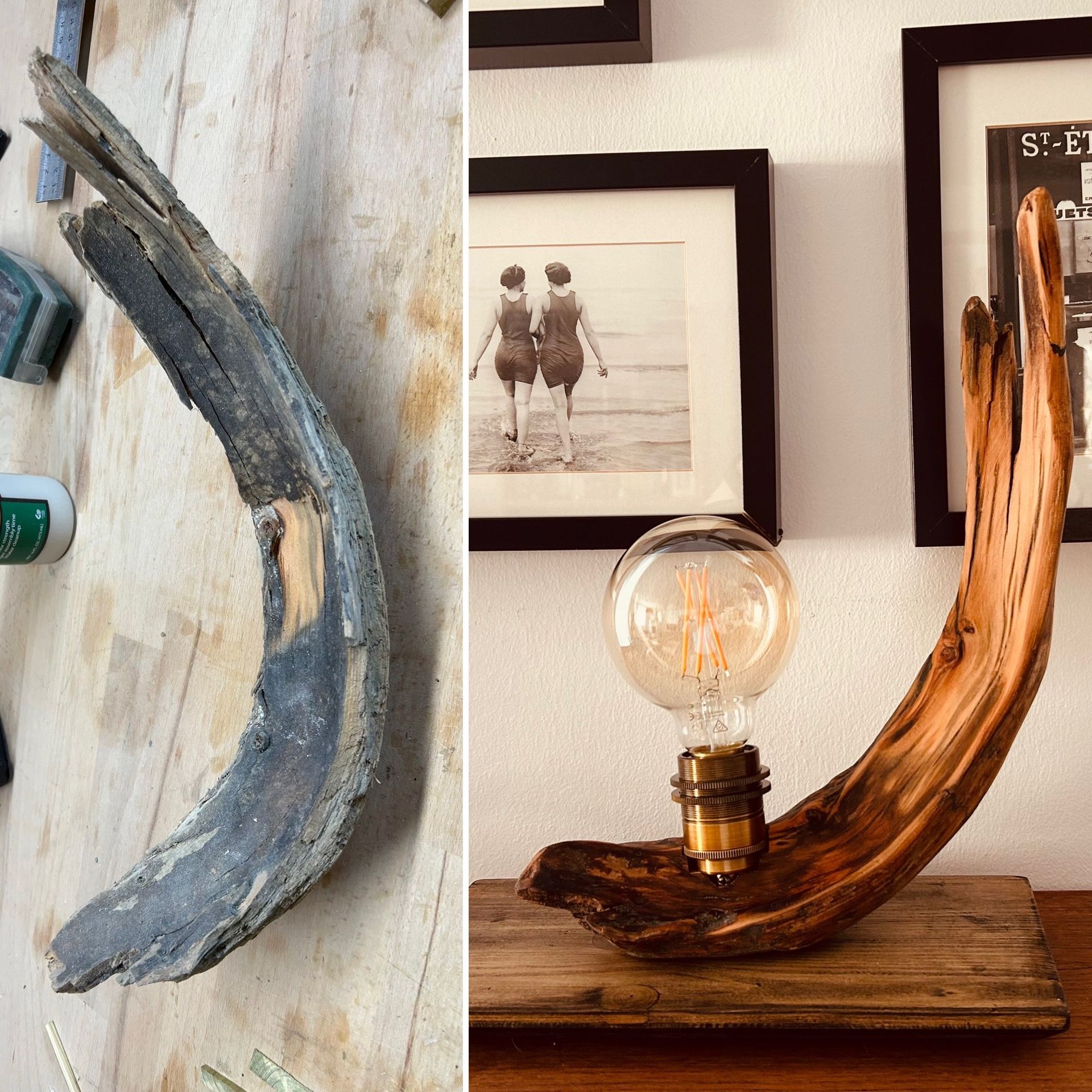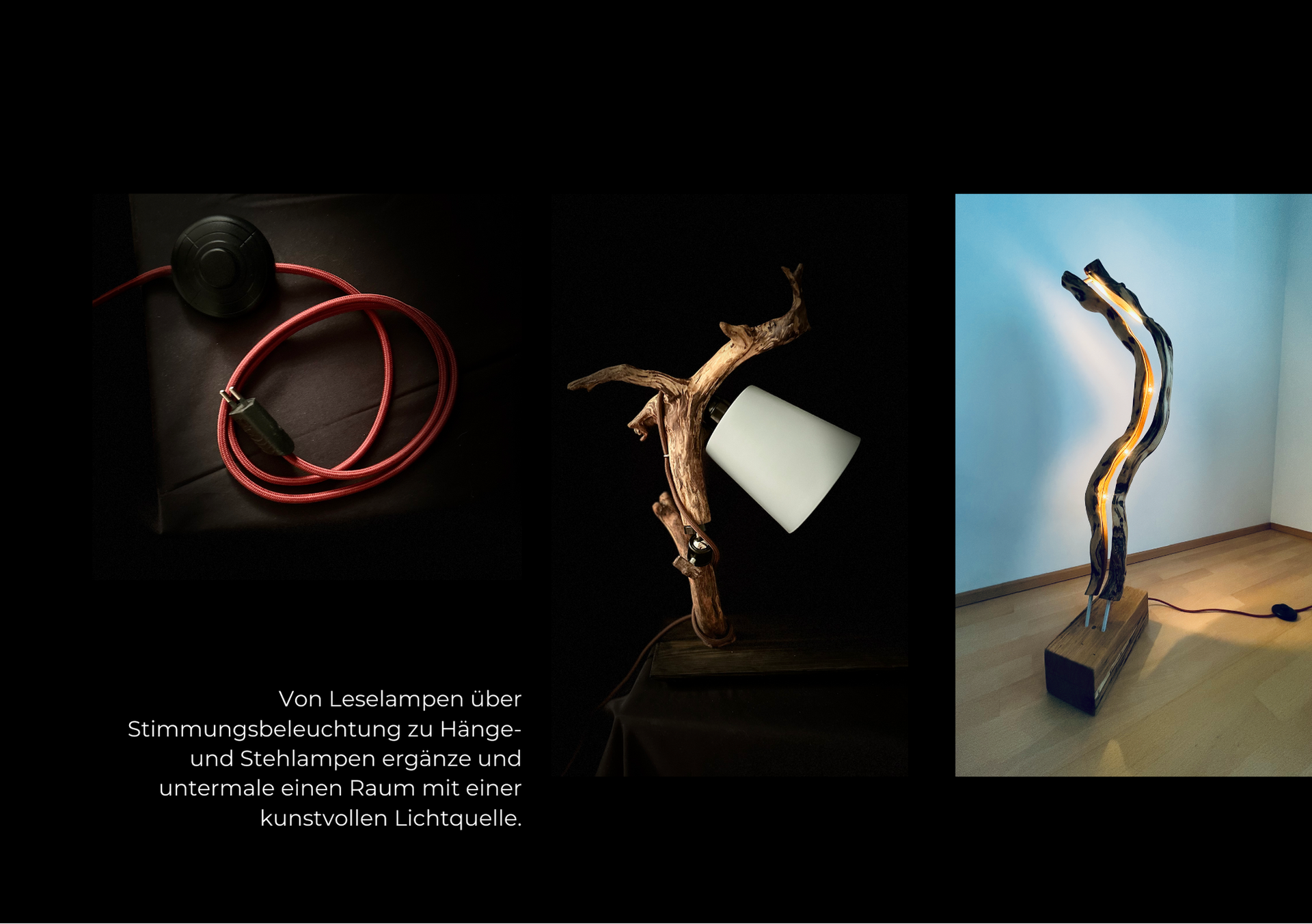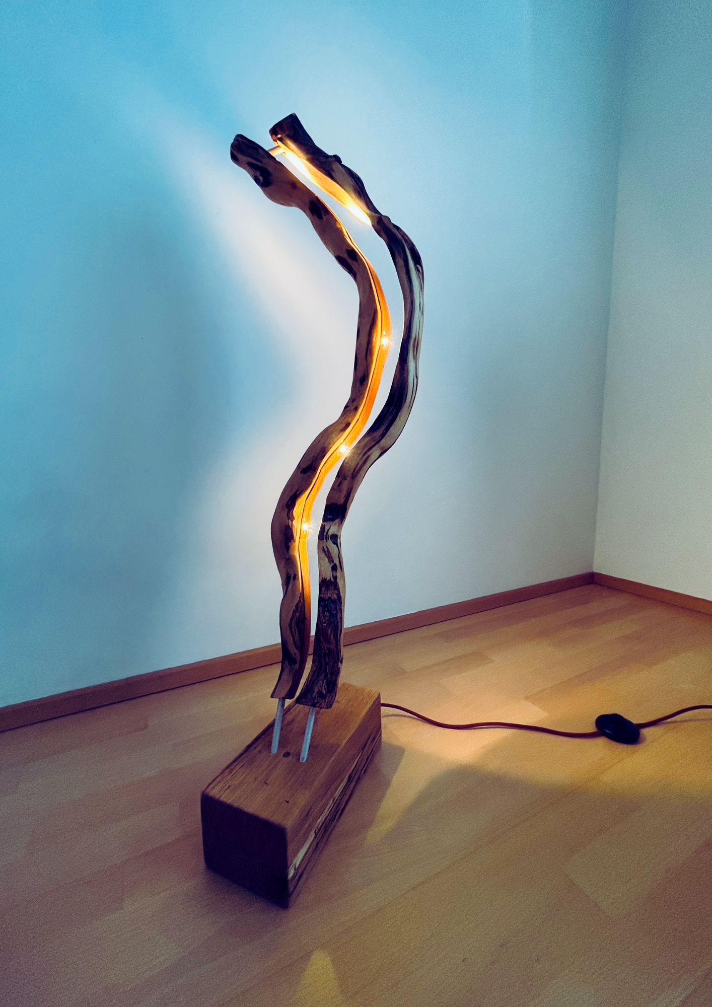 Ob groß klein, stehend oder hängend verleiht eine Lampe aus Schwemmholz jedem Raum einen besonderen Akzent. Das gefundene Schwemmholz gibt die Größe und Art der Lampe vor. Details in Bezug auf Sockelfarbe oder Kabelfarbe sowie gewünschtes Leuchtmittel können individuell angepasst werden. So entstehen Unikate passend für jede Einrichtung und jeden Geschmack. Welche Lampe gewählt wird entscheidet vielleicht auch der vorhandene Platz. Ein Werkstück aus Schwemmholz braucht Raum um gesehen zu werden.