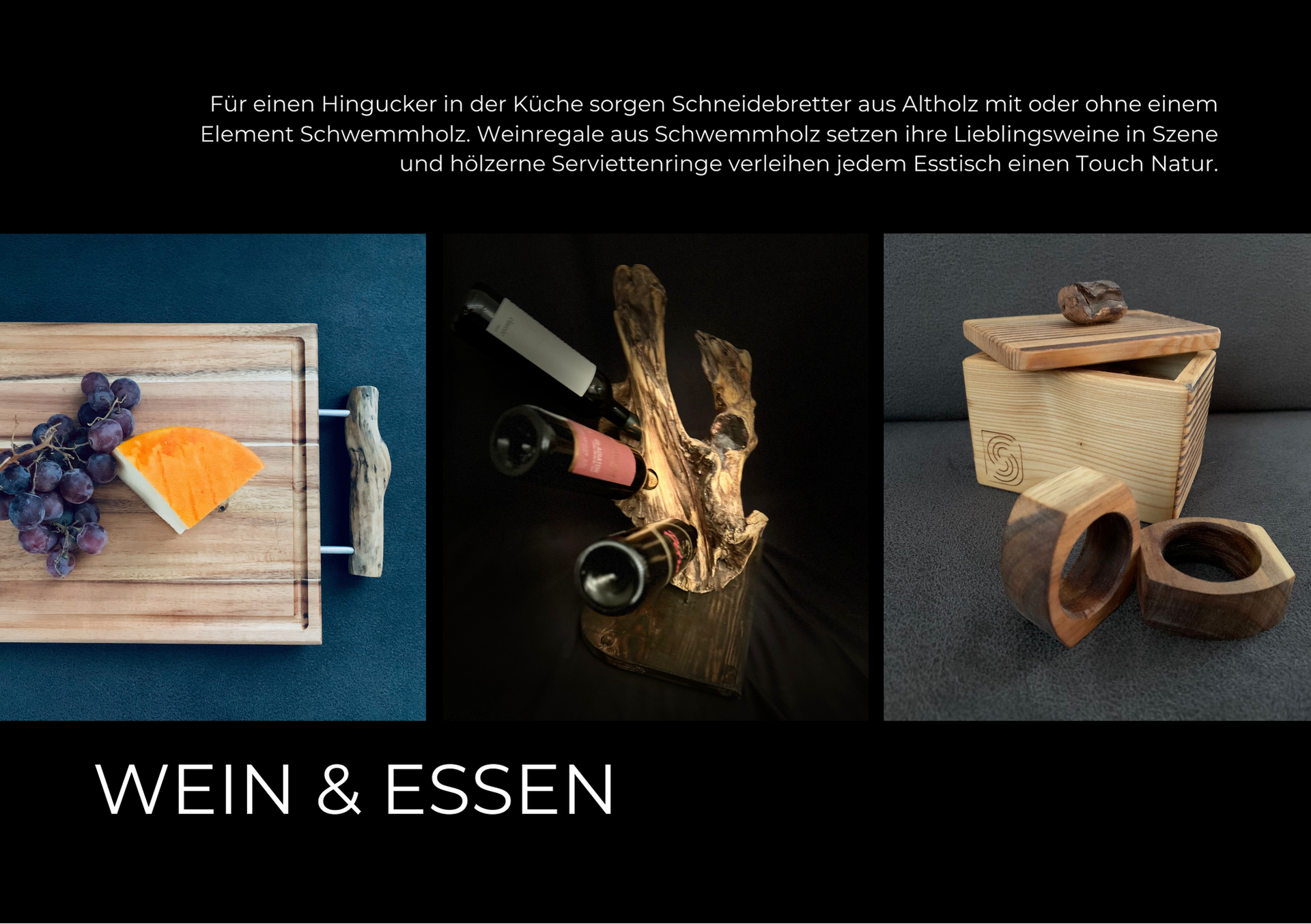Werkstücke bzw. Möbel aus Schwemmholz sind Blickfang und Dekor in einem. Jedes Stück ist ein Unikat da hier das Schwemmholz die endgültige Form und das Aussehen vorgibt. Teile können auch hier wieder individualisiert und für die eigene Vorstellung gestaltet werden. Ob ein Beistelltischchen eine pinke Tischplatte erhält entscheiden Sie.
